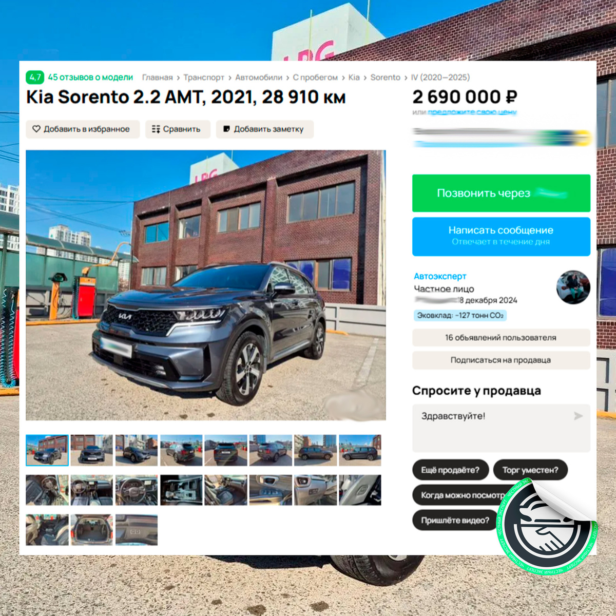 На скринах ☝️ ример подобного объявления, цена приблиз. ~1.5 млн. ниже оценки. Дальше все просто. Звонят, предлагают добавить в базу, подыскать подобный вариант и за скромную предоплату (без договора, конечно) привезти автомобиль аж прямо домой. Объявления с точно таким же описанием, но разными фото, мы наблюдаем уже давненько, причем с разных аккаунтов.