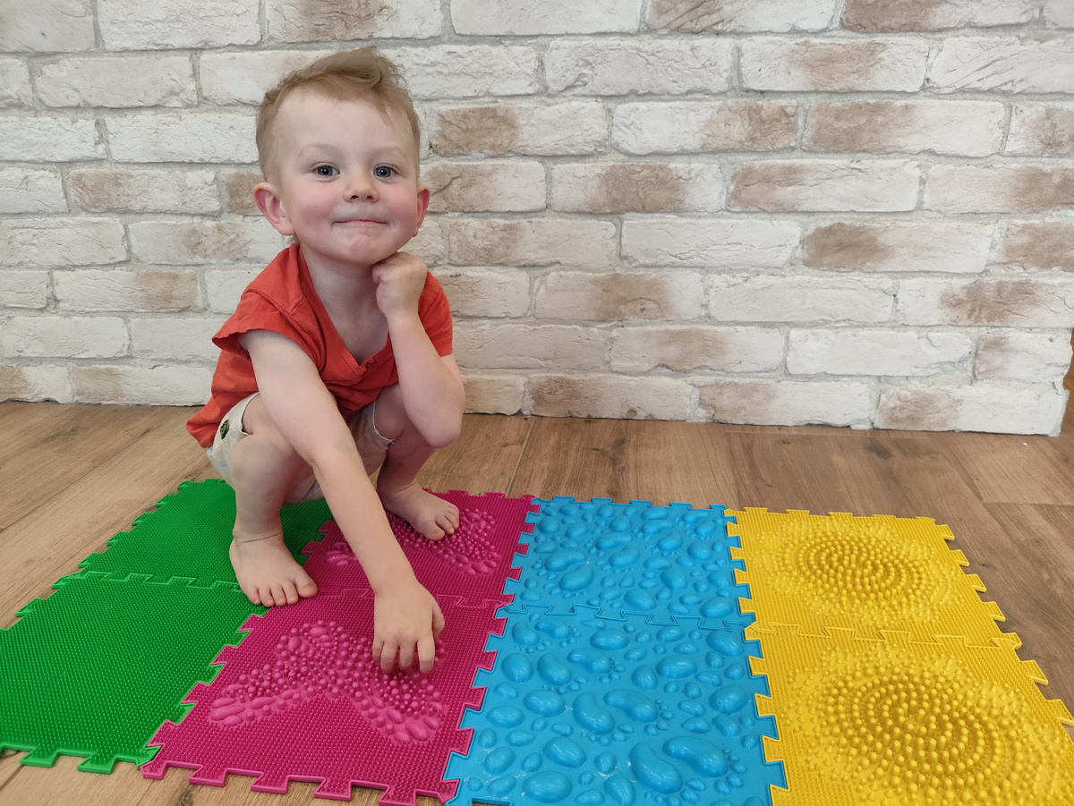 Развивающие массажные коврики, помимо основной функции (развитие стопы), - это отличный материал для психического развития ребенка. Мы используем ортоковрики с первых месяцев жизни мальчишек. Обычно наш день начинается с зарядки и коврики одна из её составляющих. Примерно с 3-4 месяцев мы давали мальчишкам трогать коврики руками. Для малышей очень важно сенсорное развитие: смотреть на яркие цвета (лучше синий, жёлтый, красный и зелёный), трогать разные поверхности и материалы, фокусировать взгляд на рисунке. Ближе к 6 месяцем, начинали наступать ножками, сначала на самые мягкие части, потом потверже. Если дети боялись, не заставляли и возвращались к этому упражнению через неделю. Обязательно сопровождали занятия потешками: Большие ноги идут по дороге и тд., для развития речи и поддержания интереса. После года мальчишки уже пытались сами собирать пазл из ковриков, подбирать одинаковые детали. Впечатления от таких упражнений только положительные, уходит тонус, развивается эмоциональная