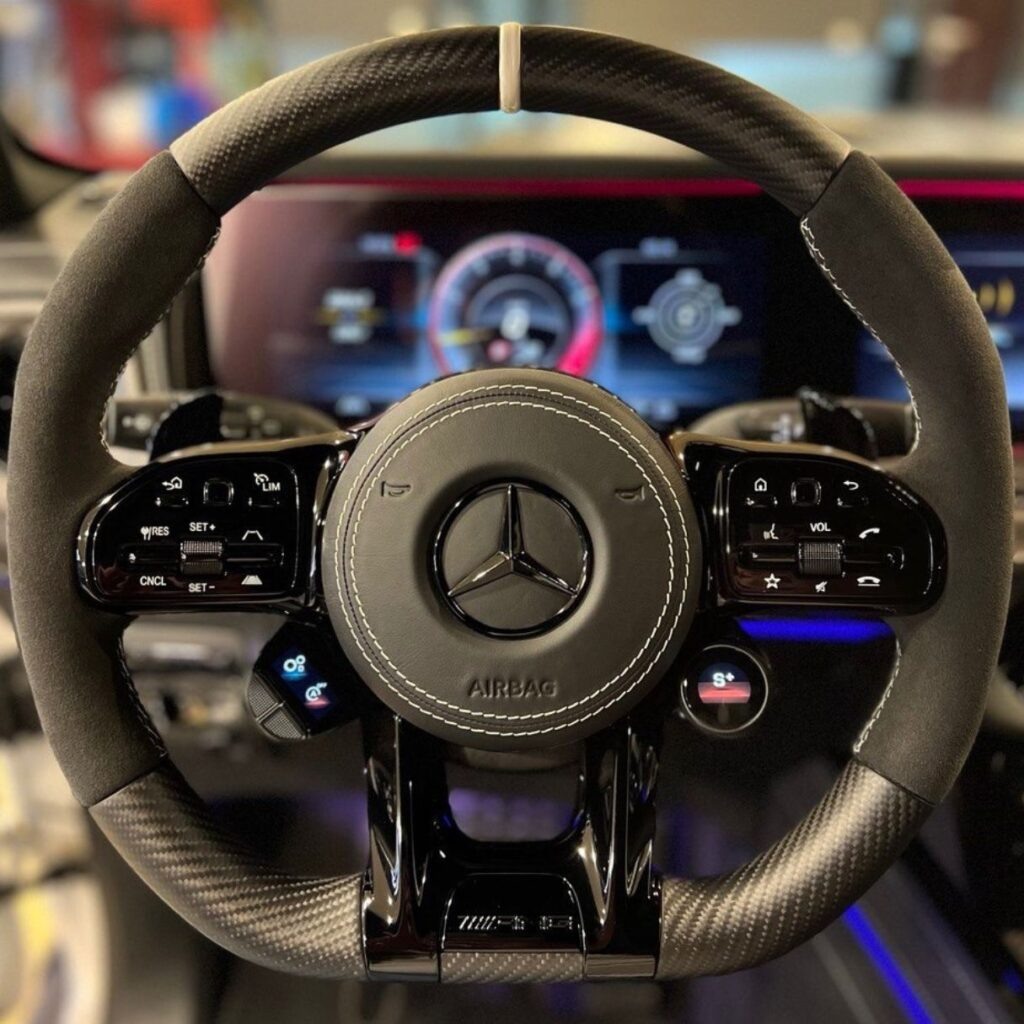Перетяжка руля Mercedes-AMG G 63: Алькантара и Матовый Карбон – Идеальное Сочетание