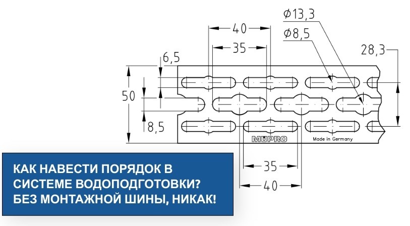Порядок в сантехническом хозяйстве — залог сухого пола и хороших отношений с соседями. Не последнюю роль в устройстве коллекторов отопления и водоснабжения играют монтажные сантехнические шины. О них наш сегодняшний рассказ. Монтажная шина — это перфорированная полоса оцинкованной стали, предназначенная для монтажа трубопроводов и периферийного оборудования различного назначения: газо-, водо-, теплоснабжения, канализации, вентиляции и т. д. Ключевое преимущество монтажной шины — универсальность. Ее легко адаптировать к абсолютно любым коммунальным линиям, независимо от пространственного положения (вертикаль, горизонталь) и физических условий (температура, влажность). Имея под рукой такие пластины, не нужно думать о том, как разместить коммуникации в нишах, углах и других труднодоступных местах. С применением монтажных шин создание многоуровневых инженерных систем становится похожим на игру в конструктор для взрослых. Схема перфорации шины разработана специально для эргономичной компоно