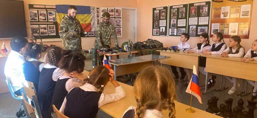 В школы района приглашают ветеранов боевых действий. Они встречаются со школьниками, общаются с юными целинцами, отвечают на вопросы. В Целинской школе № 32 состоялась такая встреча: ветераны боевых действий посетили учебное заведение, чтобы поделиться своим опытом с подрастающим поколением. Алексей Иванович Агеев, участник специальной военной операции и Евгений Анатольевич Мирошниченко, ветеран контртеррористической операции на территории Чеченской республики, провели для школьников урок Мужества. Добровольческая миссия носила и практический характер. Бывшие военнослужащие обучали ребят жизненно важным навыкам оказания первой медицинской помощи. Школьники узнали, как правильно накладывать жгут, останавливать кровотечение и оказывать первую помощь при различных травмах. Встреча произвела на ребят неизгладимое впечатление. Они смогли не только получить ценные знания и навыки, но и почувствовать глубокое уважение к подвигу защитников Отечества, — поделились впечатлениями от уроков Мужест