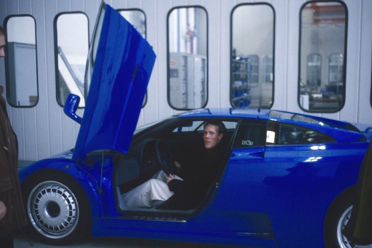 Внутри главного зала площадью около 5000 м² мы получили представление о процессе окончательной сборки. Помнится, я тогда подумал, что здесь можно было бы есть прямо с пола: всё было до блеска чистым, ухоженным, все предметы были аккуратно разложены по коробкам. С потолка свисали широкоформатные снимки старых Bugatti в профиль, в то время как почти готовые EB110, стоявшие внизу, в основном, были синими, серебристыми или чёрными. Автомобили, которые мы видели на конвейере, вероятно, были первыми четырьмя моделями EB110 SS. Три из них были отправлены султану Брунея в серебристом, чёрном и жёлтом цветах, тогда как четвёртый в синем предназначался для заказчика из Испании.
