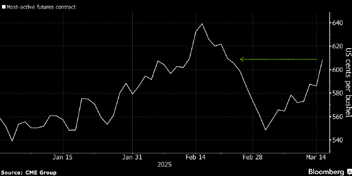 Главной причиной взлета цен послужила ветряная погода в центральных регионах США, которая представляет угрозу для урожая. Июльские фьючерсы на твердую краснозерную озимую пшеницу в центах за бушель. Источник: Bloomberg В понедельник июльские фьючерсы на твердую краснозерную озимую пшеницу подскочили на 5% с лишним (рекордное значение с июля 2023 года) и достигли самого высокого уровня с середины февраля. Главной причиной взлета цен послужила ветряная погода в центральных регионах США, которая представляет угрозу для урожая. Масштабная система штормов, прокатившаяся по США на выходных, спровоцировала лесные пожары в Техасе и Оклахоме. Кроме того, она усугубила засушливые условия, которые угрожают урожаю пшеницы в основных сельскохозяйственных регионах страны. Национальная метеорологическая служба США предупредила, что в понедельник и вторник большая часть этого региона будет находиться в зоне критически пожароопасной погоды. С начала марта биржевые цены на с/х культуры в США показывают