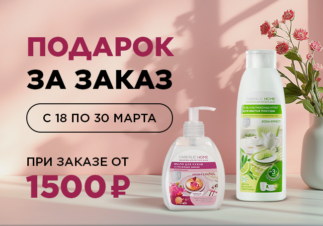 Всем огромный привет! Не забывайте про акцию "Подарок за заказ" от Faberlic. Условия акции: С 18 по 30 марта некоторые покупатели, которые сделают заказ от 1500 руб. (в ценах каталога) получат в подарок (за 1 руб.) набор: Счастливчики получат уведомление по e-mail. Подарок доступен при оформлении заказа в разделе «Персональные акции – Подарок за заказ». Покупатель может получить только один подарок за указанный период. Ссылка для регистрации в Фаберлик https://faberlic.com/register?sponsornumber=742107263&lang=ru&r=1000034210371