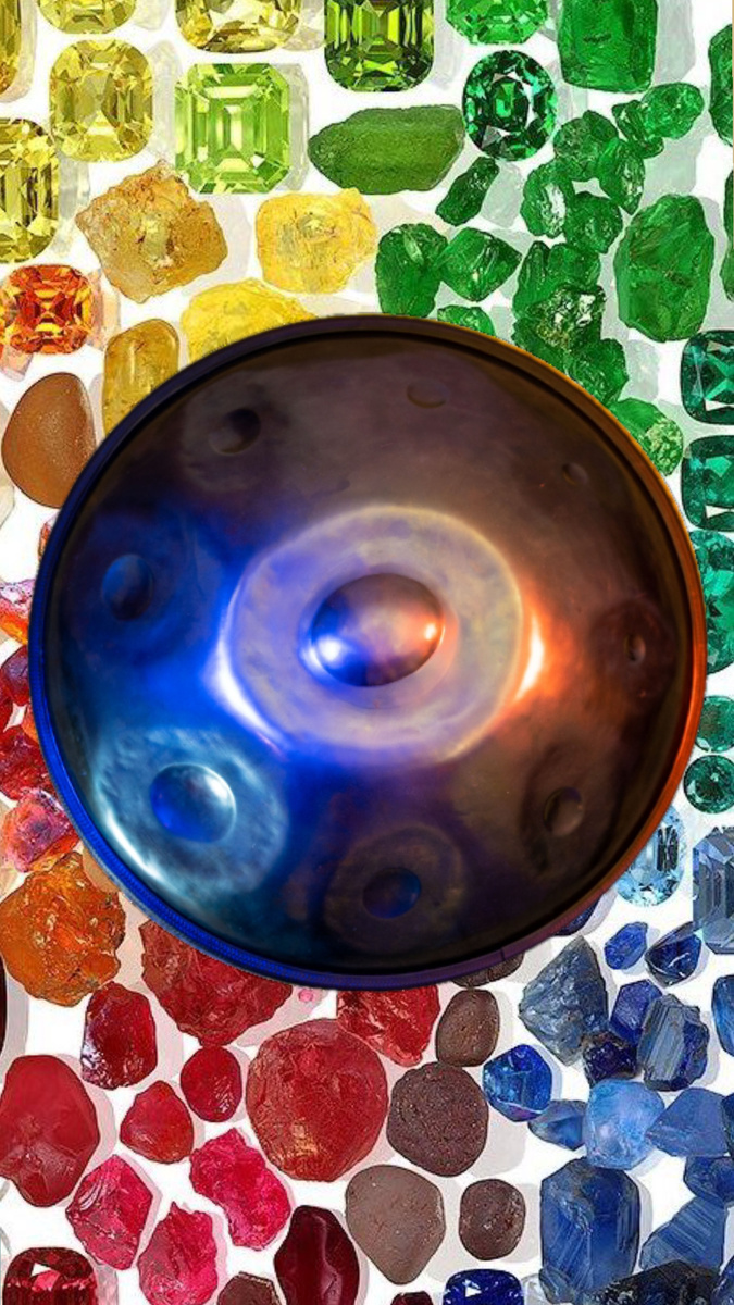 - Для синхронизации держите кристаллы в руках, играйте на ханге и визуализируйте, как энергия камней и звука объединяются для достижения вашей цели.