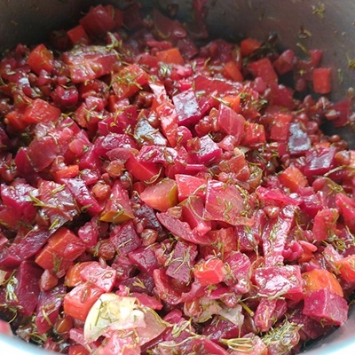 Нарезаем овощи - у меня свекловь, морква и лучок