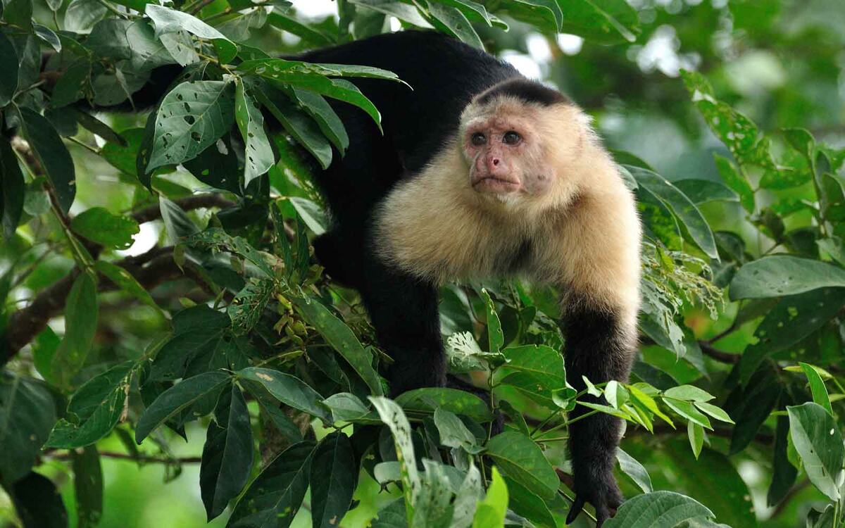 Капуцин обыкновенный выглядит смышленым и шустрым. Он очень подвижен и находиться на одном месте просто не может. Они дружелюбны и очень любопытны. Это милые и непосредственные животные. Они чрезмерно эмоциональны и пугливы. Эмоции меняются очень быстро. Обезьянка открыто показывает все свои эмоции. У капуцинов хорошо развита мимика. Это наиболее способный и сообразительный вид приматов. Шерсть капуцина имеет черный или темно-бурый цвет. Спина и лапы черного цвета. Шея, грудь и плечи примата желтовато-белого оттенка. На мордочке капуцин обыкновенный имеет кожу розоватого цвета, без шерсти. Вокруг мордочки у примата белый мех. Животное имеет большие темные глаза, поэтому капуцин выглядит очаровательным и очень проникновенным. Иногда над глазами присутствуют темные отметины. Также у примата имеются большие клыки треугольной формы. Капуцин обыкновенный выглядит небольшим приматом, имеет гибкое и стройное тело с тонкими конечностями. Средняя длина тела животного составляет 35-45 см, длина