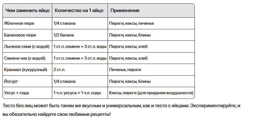 Тесто без яиц — это отличная альтернатива для людей с аллергией на яйца, веганов или просто для тех, кто хочет попробовать что-то новое. Существует множество рецептов теста без яиц, подходящих для разных видов выпечки и блюд.