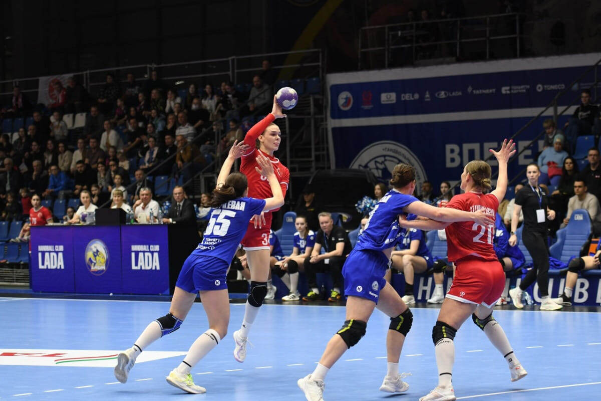 Но стартовый отрезок тольяттинкам решительно не удался. В обороне хозяйки и не успевали за оппонентками, и проигрывали все индивидуальные дуэли. После того как первые два броска Ольги Фоминой приняла на себя штанга, полусредние решили взять всё в свои руки и явно переусердствовали с неподготовленными дальними бросками.