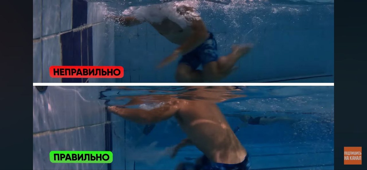Сегодня поговорим про технику выполнения разворота маятник. Ведь разворот в плавании — это необходимый элемент, который нужно отработать до автоматизма. Если вы не умеете делать разворот, то вы быстро устаете и теряете темп и время. Если же вы умеете правильно делать разворот, то вы уже на шаг впереди своих соперников. В статье расскажем о пяти частых типовых ошибках, которые новички допускают при развороте маятник. Ошибка 1. Неправильная плоскость при развороте. Заключается она в том, что вы разворачиваете себя не вертикально, а горизонтально, смещая огромную массу воды, встречая огромной сопротивление и тратя время и силы. Эта ошибка чаще возникает у новичков, которые только осваивают поворот маятник. Она происходит чаще всего из-за непонимания процесса и не знания теории. Чтобы исправить эту ошибку, необходимо делать специальное упражнение — проталкивание. Нужно встать у стены, ладошкой проталкивать корпус над водой, а не через нее. Делать упражнение необходимо с тренером. Ошибка 2.