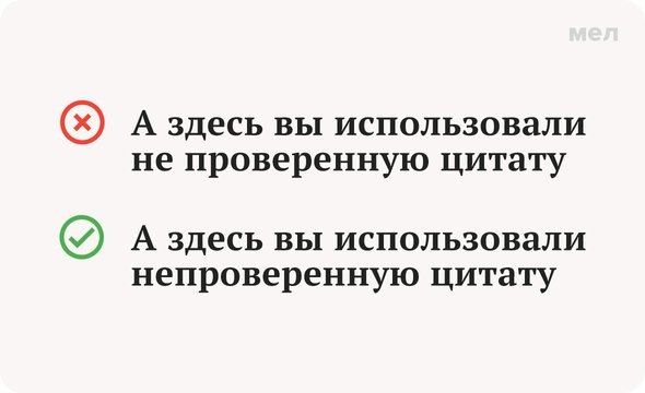 В этом случае правильный вариант — слитно. Но, как обычно с причастиями, есть нюансы, и их немало. В общем, надо разбираться. Чем и займемся. Правильно: непроверенная цитата Тема «Правописание НЕ с причастиями» — это территория тайн. И на вопрос «Как писать правильно: непроверенная или не проверенная?» невозможно ответить однозначно, потому что, выбирая верный вариант, нужно учитывать очень много факторов. Так что воспользуемся методом слона и попробуем осилить это правило, порубив его на маленькие кусочки. Но: Или: Но: Такие вот американские горки с причастиями. Надеемся, вам стало хоть немного понятнее. Если нет — сохраните эту карточку в закладках, чтобы не приходилось долго искать, когда этот вопрос снова всплывет. И на всякий случай напомним: в словосочетании «непроверенная цитата» мы имеем дело с полным причастием, у которого нет пояснительных слов, — такие по правилу нужно писать слитно. Больше полезных карточек о русском языке — в «Грамотности» на «Меле» в Telegram. Подписывайт