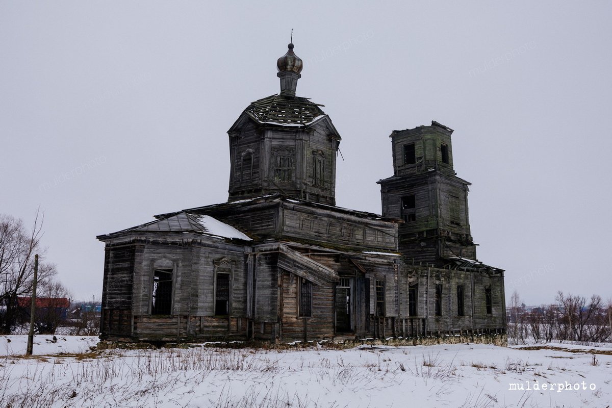 Заброшенная деревянная церковь в с. План, Пензенской области