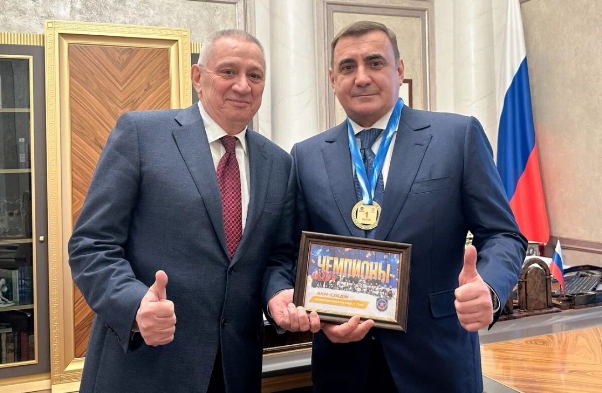 Председатель совета директоров группы компаний «Полипласт» Александр Зинурович Шамсутдинов встретился с помощником Президента России, Секретарем Госсовета РФ Алексеем Геннадьевичем Дюминым. Он поблагодарил Алексея Геннадьевича за всестороннюю поддержку команды «АКМ-Следж», которая впервые стала победителем Чемпионата России по следж-хоккею. Александр Шамсутдинов отметил, что это значимое событие не только для академии, но и для всего спортивного сообщества Тульской области и России и поблагодарил Алексея Геннадьевича за высокую оценку спортивного результата команды. От лица победителей Александр Зинурович передал золотую медаль победителей помощнику Президента. «Мы от всего сердца благодарим Вас, Алексей Геннадьевич, за вашу поддержку и веру в нас. Плечом к плечу вместе мы шли к этой долгожданной победе и смогли достичь этой важной цели! Вместе мы доказали, что упорство и труд могут преодолеть любые преграды!»,- цитирует капитана команды «АКМ-Следж» Илью Камалова пресс-служба АКМ. Напо