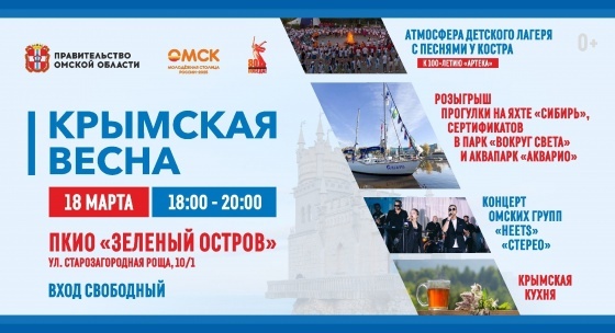 В Омской области отпразднуют воссоединения Крыма с Россией ярким фестивалем Гостей ждут различные активности, песни у костра, крымский чай, концерт и розыгрыш призов. Сегодня, 18 марта, исполняется 11 лет, как в состав нашей страны вернулся полуостров Крым и Севастополь. В честь этого события в Омской области традиционно организуют насыщенную программу. В этом году фестиваль пройдет на территории парка «Зеленый остров» и начнется в 18:00. Омичей ждут разнообразные активности для молодежи и семей с детьми. На площади перед сценой будет организована выставка советского и современного оружия, а также каждый желающий сможет попробовать себя в сборке и разборке автомата. Гостей праздника порадует живая музыка: концерты проведут группы «HEET» и «СТЕРЕО». Кроме того, все гости смогут насладиться горячей кашей и попробовать крымский чай. Отдельная часть программы будет посвящена 100-летию лагеря «Артек». В честь этого события студенческие отряды воссоздадут атмосферу детского лагеря с песнями