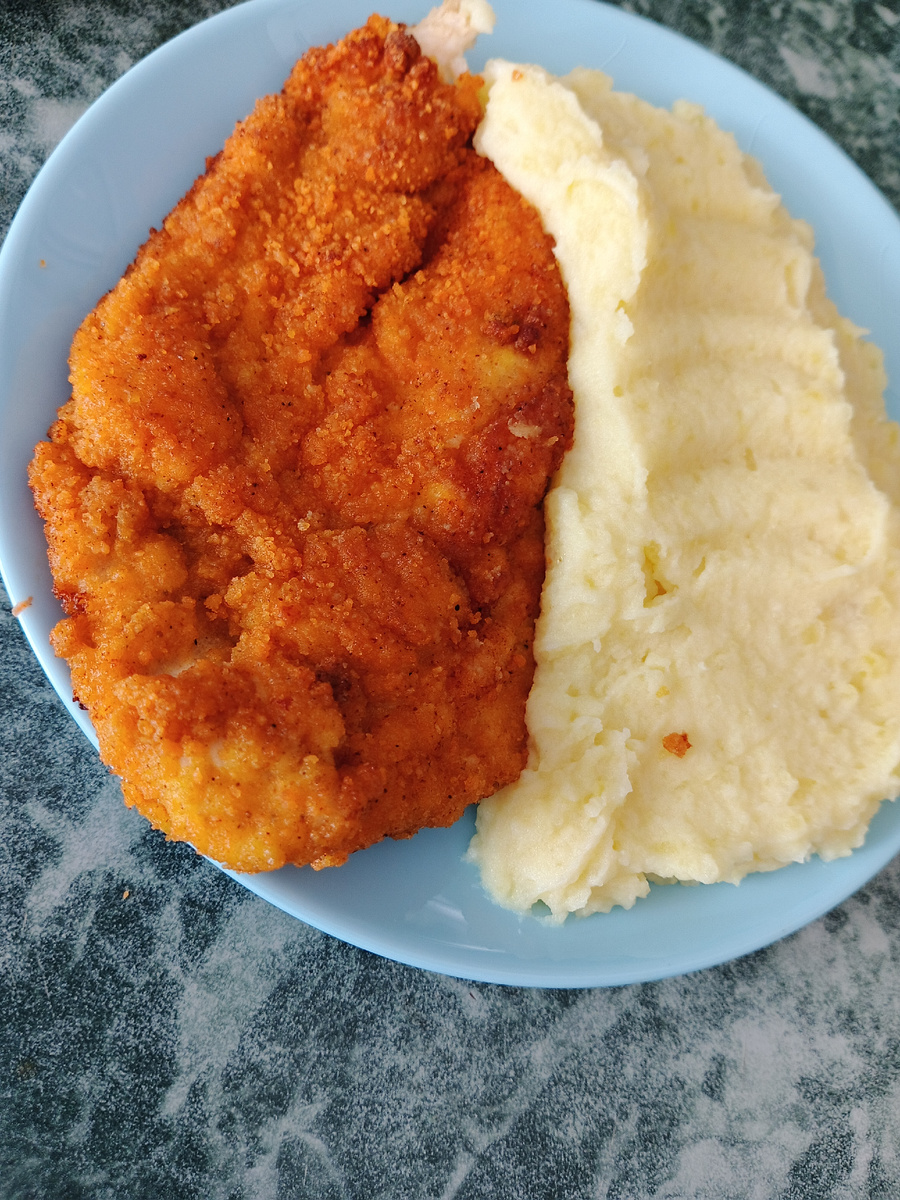 Куриную грудку разрезать вдоль на пласты толщиной меньше сантиметра, отбить столовым молотком .Посолить , поперчить. Отдельно в чашечки насыпать муку, панировочные сухари , а также разбить яйца и размешать вилкой.Добавить немного соли и перца. Обваливать сначала в муке , потом в яйце, затем в панировке и обжаривать на разогретом растительном масле с двух сторон .