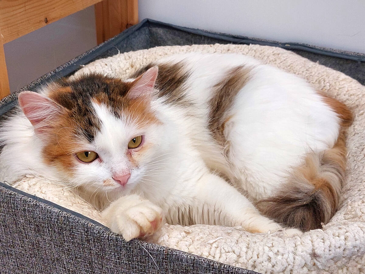 Романтичная натура, красавица в рыжем беретике, поднимает свои огромные желто-зеленые глаза и вздыхает… Небо, голубое небо и солнышко отвечают ей улыбкой и дают надежду на счастье и любовь. Лада, так зовут эту романтичную натуру, блондинка. Самая настоящая, без всяких прикрас и хитростей, хотя для кошек, это может, и не важно) В приюте любят эту кошку и ласково называют Ладушка. Она и в самом деле такая, пушистая, теплая и очень добрая. И еще Ладушка прекрасно воспитана. Никогда не выйдет из себя эта кошка, не зашипит, не даст обидчику сдачи. Показывая просто олимпийское спокойствие, кошка вздохнет и отвернется, если что то будет не так. Зачем тратить энергию и силы на скандалы, думает она. Лучше присмотреться повнимательнее к кому — нибудь и найти себе друга на всю жизнь. Ведь этот друг может появиться в любой момент. Кстати, очень мудрая позиция. Девушкам на заметку) Приходите знакомиться с Ладой. Покажется невероятным, но в этой кошке собрано все то, что необходимо для счастья. Это