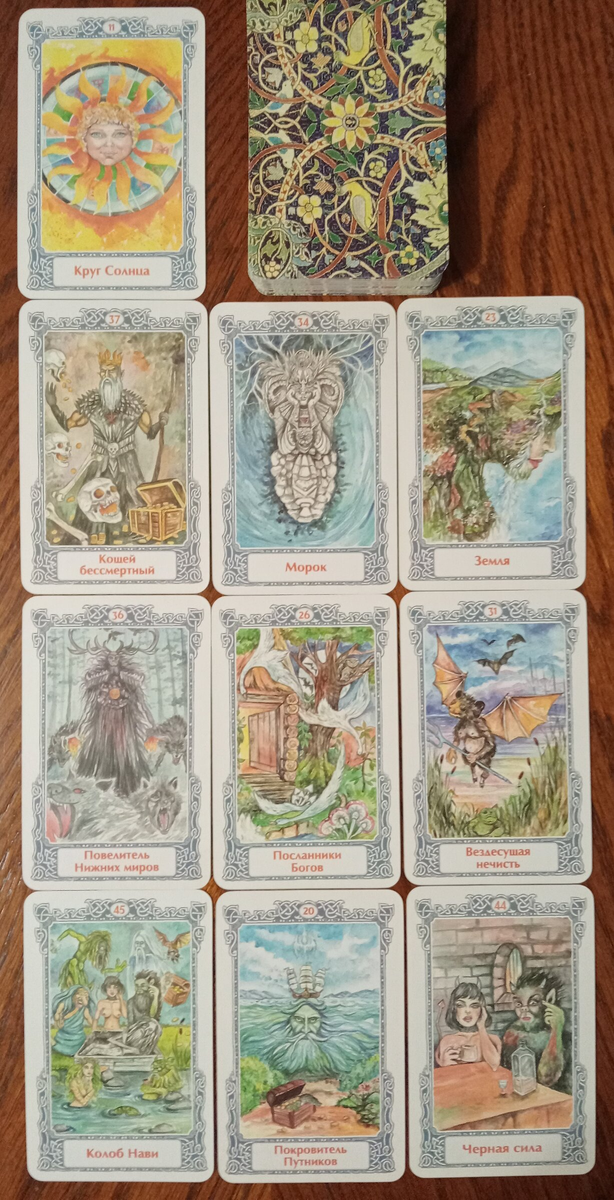 Карты говорят о серьёзных переменах, которые произойдут в ближайшее время в Вашей жизни. В этот момент необходимо проявить самые лучшие свои качества - мужество и смелость. Это позволит постепенно, шаг за шагом подойти к своей цели. Возможно, будут финансовые потери, но карты советуют спокойно к этому отнестись, так как впоследствии всё вернётся сторицей. Это время переходного периода, когда произойдёт осознание, что этот жизненный опыт просто необходим, и принять его. Может произойти разрыв с человеком, о чём Вы давно думаете (это касается "дружеских" отношений, но не личных). Раньше Вы могли не заметить открытого и явного негатива против Вас, человек всё делал исподтишка. Неожиданная ссора с другом (подругой) или родственником. В настоящий момент события находятся под влиянием судьбы, именно она распоряжается всем, и это нужно понять. Ваше сопротивление здесь неуместно. Уберите страх перед переменами и стойко принимайте этот вызов. Пройдёт немного времени, и Вы поймёте, как Высшие Силы заботятся о Вас и как все события произошедшие с Вами и принесшие изменения, создали благоприятные условия для новых начинаний. Совет: не переживайте о том, что уже в прошлом. Лучше приготовьтесь к новой и интересной жизни, получите удовольствие от обновлений. Карты показывают: люди видят Вас как горделивого человека, которому не свойственны капризы. Вы получите помощь, да и Вы сами способны помогать. Вы наделены Даром предвидения можете предсказывать события. Если Вам будут предлагать помощь, не отвергайте её, так как всё встанет на круги своя и ещё возможно Вам придётся обратиться за ней.