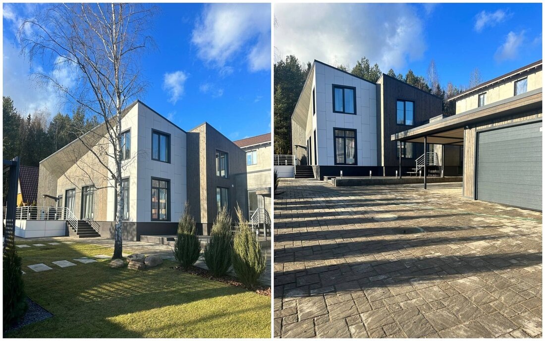 На участке у леса в СТ рядом с Минском продается новенький современный двухэтажный дом. Он подходит для круглогодичного проживания: внутри отделан деревом, обставлен мебелью и техникой. Интерьер получился очень стильным. Во дворе не менее красиво: есть бассейн, купель и беседка. Посмотрите на все сами. Дом построили в 2025 в СТ «Узборье-строй». Он двухэтажный, внутри отделан деревом. Площадь современного коттеджа составляет 166 м². На первом этаже разместилась кухня-гостиная со вторым светом. Тут обустроены зоны отдыха с камином и столовая. Из панорамного окна в помещение попадает много солнечного света. Мебель и техника остаются после продажи. Всего в доме три спальни. Две из них находятся на втором этаже. Также имеется два санузла. Один из них довольно просторный, с ванной и душем. Здесь также стоит диван и даже телевизор. Отапливается коттедж на газу, вода введена из скважины, канализация — местная. Сам участок занимает 8 соток. Он ухоженный: тут сделаны дорожки, навес на две машины