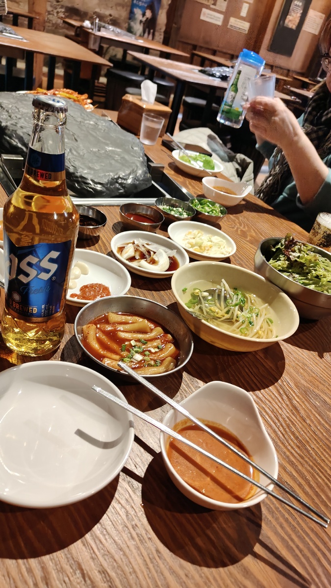 Теперь о хорошем: во-первых, мой организм с непривычной корейской едой справлялся прекрасно. Настолько прекрасно, что первый день я ещё удивлялась, зачем такие огромные порции, и свой первый бранч с гига-дамплингами я не одолела. Как и в дорамах я постоянно удивляюсь, сколько же жрут кушают эти корейские миниатюрные красавицы (и при этом не толстеют!). А на второй день с изумлением обнаружила, что эти тазы еды и в меня оказываются залетают прям легко. После экскурсии по Сеулу с Юлей мы зашли в кафе и заказали токпокки и кимбапы. Нам принесли по тазику и по хорошей такой дубинке, и как-то за разговором, после дня на свежем воздухе, и как-то токпок за токпоком - и весь тазик как-то незаметно в меня и поместился (и дубинка тоже). Прям удивительно.