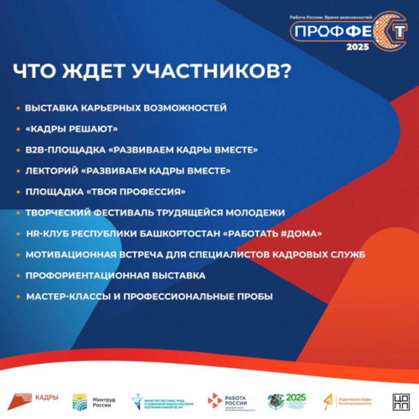 18 апреля в Уфе стартует всероссийская ярмарка трудоустройства «Проффест. Работа России. Время возможностей». Более 350 компаний представят вакансии в различных сферах: нефтегазодобыче, строительстве, машиностроении, здравоохранении, торговле и других. Основные площадки мероприятия: - Конгресс-холл «Торатау» (ул. Заки Валиди, 2): выставка работодателей, мотивационные встречи, фестиваль и активные зоны. - Межвузовский студенческий кампус (ул. Заки Валиди, 32/2): профориентация, тестирование, консультации психологов и мастер-классы. Для участников СВО и людей с инвалидностью подготовлены отдельные программы. Работодатели смогут узнать о мерах поддержки и цифровизации документооборота. По итогам прошлого «Проффеста» трудоустроены 3,3 тысячи человек. Организаторы ожидают не менее высоких результатов в этом году. Ярмарка пройдет с 10:00. Подробности — в кадровых центрах «Работа России».