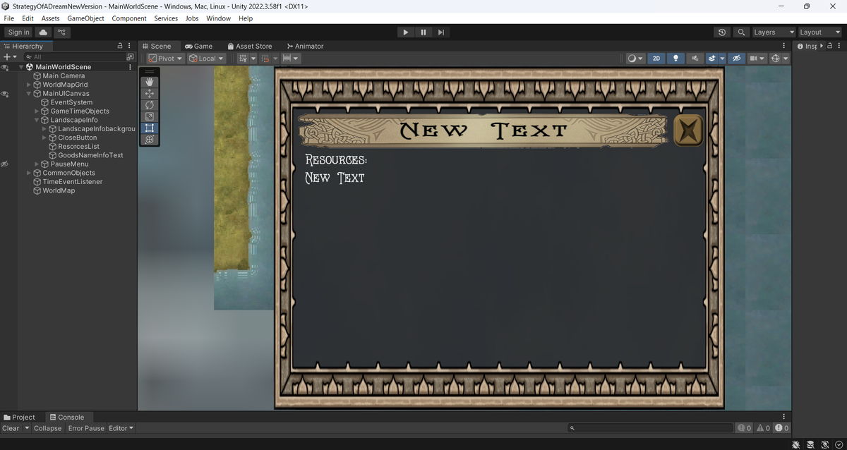 Разработка стратегии мечты – Информация о ландшафте/TileData. Приветствую, дорогие друзья! Продолжаем публикации про разработку стратегии мечты. В этой статье разберем такой вопрос как вывод информации о ландшафте и визуализируем его. Итак я создал вот такую панель- В которой будет выводится название ландшафта, ресурсы, которые свойственны данному типу ландшафта и кнопочка закрыть панель информации. В прошлой публикации, где мы разбирали TileData, мы добавили поле public Goods[] AvaliableGoods; public class LandscapeData : ScriptableObject { public TileBase[] Tiles; public string LandscapeName; public Goods [] AvaliableGoods; } Забегу немного вперед, Goods тоже наследуется от ScriptableObject, но это разберем в дальнейшем. И в этот массив товаров я передал все доступные данному типу ландшафта ресурсы. Например в океане у нас водится рыба – А на лугах – фрукты, камни, палки и дикие животные – Теперь когда мы все назначили, нам необходимо создать скрипт, который всю эту информацию будет