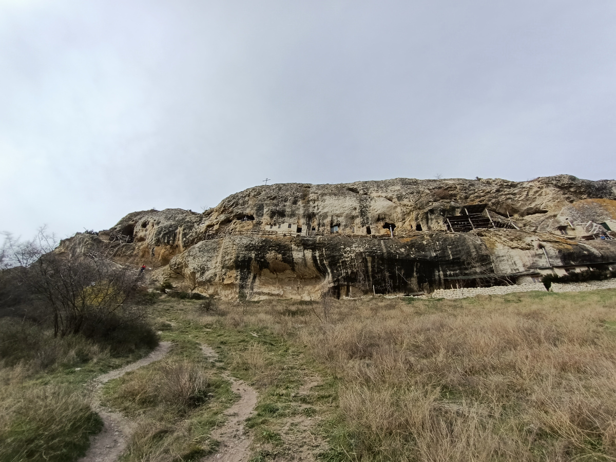 Вот и предо мной, пещеры вырубленные в скале, иногда с опорами, иногда разрушенные, из которых открывается волшебный вид на долину и на Крымские горы, скрывающие вдали Чёрное море.
