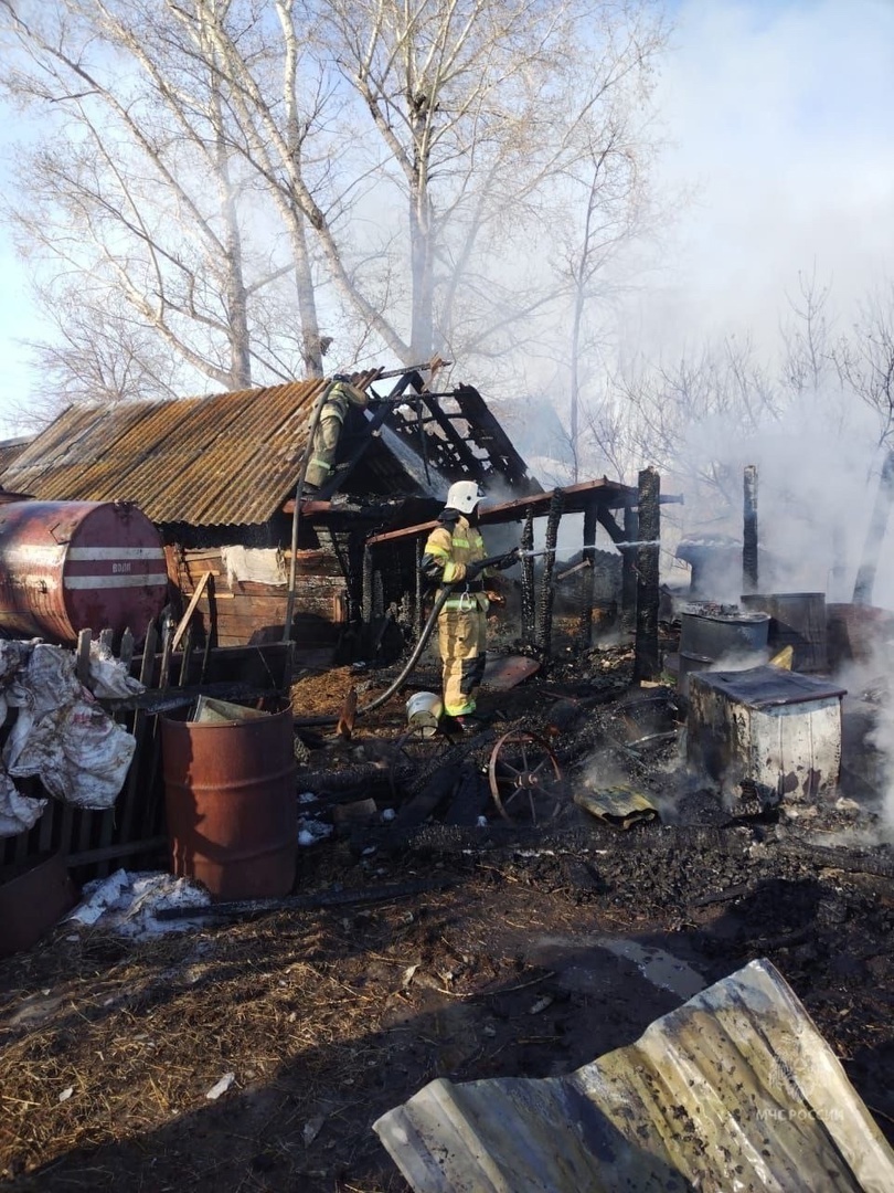 Пожар произошел в деревне Прогресс Назаровского района. Как сообщает МЧС по Красноярскому краю, причиной возгорания хозяйственных построек стало короткое замыкание электропроводки. Площадь пожара составила 50 квадратных метров. В результате погиб домашний скот (1 бык и 3 козла). Полтора часа понадобилось 8 пожарным и 4 единицам техники для полной ликвидации возгорания. Фото: МЧС по Красноярскому краю