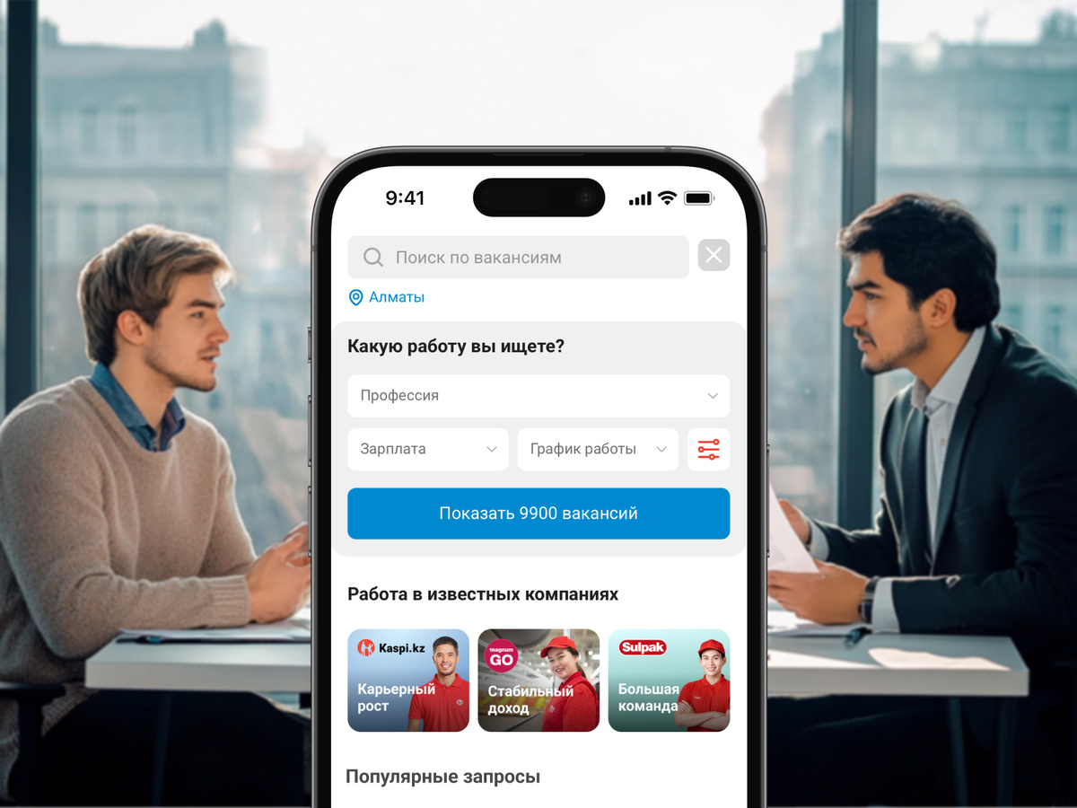 «Kaspi Работа» — это удобный и бесплатный новый сервис в приложении Kaspi.kz для поиска вакансий и подбора персонала. С его помощью работодатели и соискатели легко и быстро находят друг друга.