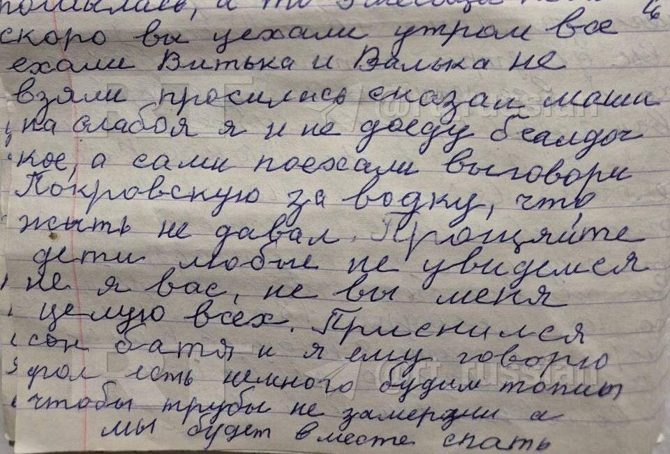 Во время зачистки в Суджи и окрестных селах бойцы батальона «Питерского» спецназа «Ахмат» обнаружили тело пожилой женщины в Мартыновке. Вместе с документами был найден ее дневник, в котором она описывает свои последние дни, напоминающие посмертные записи людей, переживших оккупацию гитлеровцев.