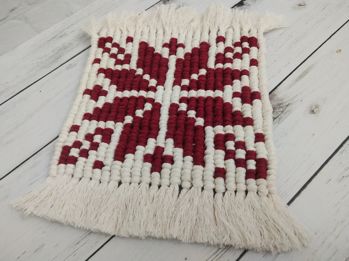 Сегодня расскажу вам что же такое техника макраме Кавандоли. В этой технике зная всего один узел макраме можно создавать неповторимые шедевры. Называется этот приём по имени его изобретательницы, Валентины Кавандоли, жившей в Италии в средние века. Кавандоли — гобеленовое полотно или итальянское плетение, которое состоит из чередования горизонтальных и вертикальных репсовых узлов. В основном чаще использую вертикальные репсовые узлы. Фактура полотна получается похожей на тканый гобелен. А еще напоминает вышивку счетным крестиком. Для плетения можно брать схемы для вышивки. В полотне можно использовать как два, так и несколько цветов. Полотно получается достаточно плотным. В технике Кавандоли создают пано, салфетки, коврики, сервировочные салфетки и др. что вы сами придумаете. В статье я показала часть своих работ. Схемы для пано я брала в интернет. Начинала с более простых. Благодаря этой технике я вернулась спустя много лет в макраме. Как всегда бывает случайно увидела книгу