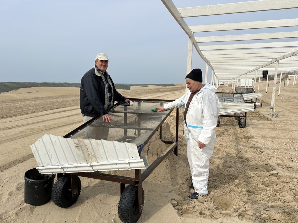 Пляжи Пионерского проспекта сейчас выглядят по-разному. Где-то песок катастрофически нуждается в просеивании, но до этих участков почему-то ни у кого не доходят руки. А на некоторых территориях организована уборка силами санаторно-курортных объектов. На пляже парк-отеля «Лазурный берег», что недалеко от речки Можепсин, идет процесс просеивания песка. Здесь работает техника и несколько просеивающих инструментов, как ручных, так и с мотором. «Наши руководители придумали эти машины, сварщики сварили конструкции, и мы работаем. Трактор собирает песок и подвозит к просеивающим машинам, а после обработки возвращает на пляж. Это облегчает работу», – рассказал Василий Балицкий. В парк-отеле он работает озеленителем, а сейчас трудится на пляже. Вместе с ним также и другие сотрудники. Свою пляжную территорию они просеивают уже по третьему кругу. Мазута здесь много. Напомним, что в районе Можепсина были масштабные выбросы в декабре. Но с каждым днем пляж становится все чище и чище. Точно так же и