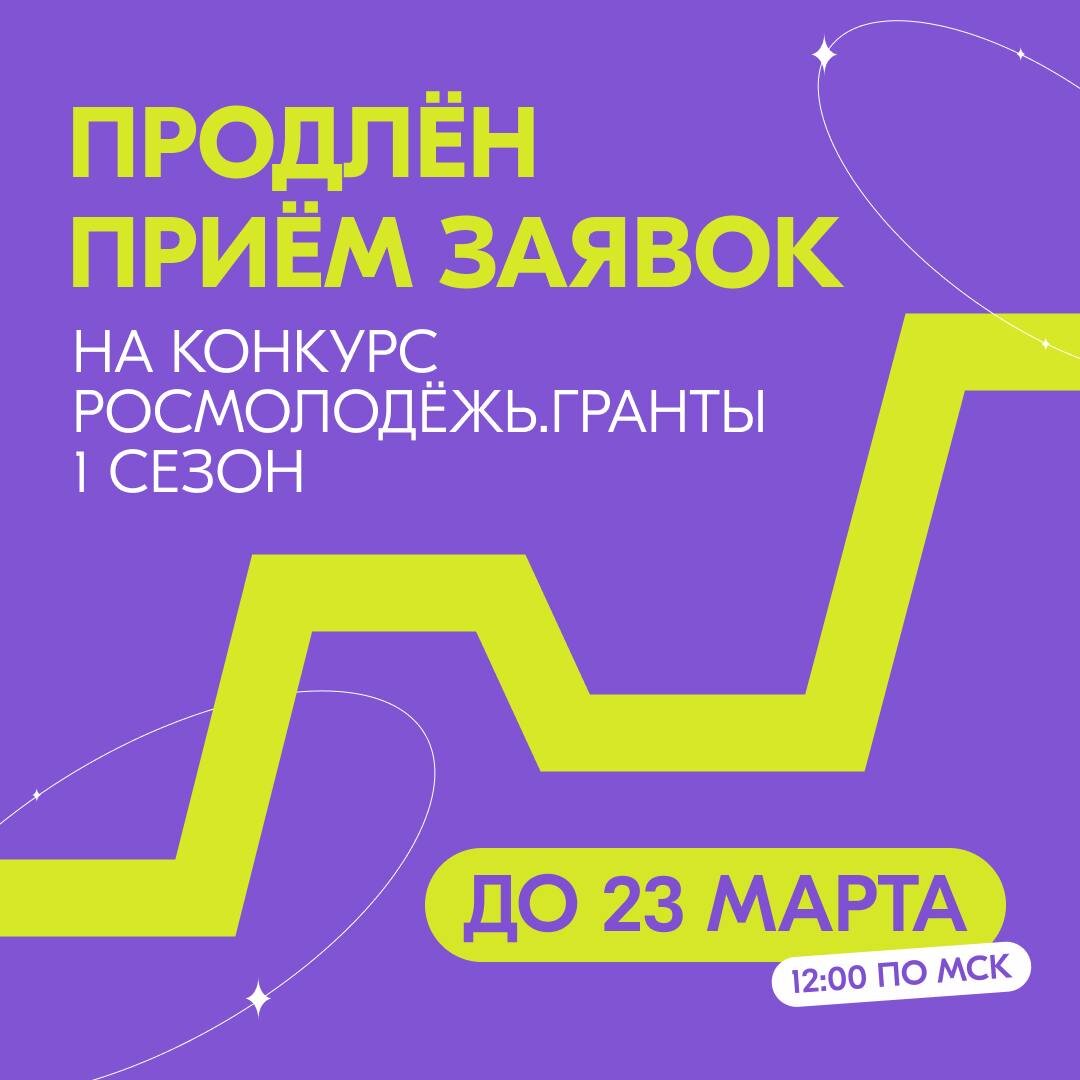Прием заявок на конкурс «Росмолодёжь.Гранты 1 сезон» продлен до 23 марта 12:00. Молодые авторы социальных проектов от 14 до 35 лет могут подать заявку на грант по ссылке - https://vk.cc/cIAyi3