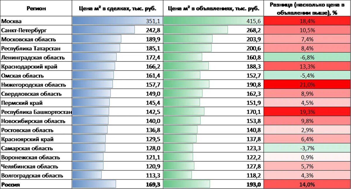 Согласно последним исследованиям «Домклика», цены на квадратный метр жилья в воронежских новостройках выросли на 1,4% за последний месяц. Стоимость квадрата при оформлении сделки в среднем составляет 121,1 тысячу рублей. Есть, правда, небольшая уловка, к которой застройщики вынуждены прибегать, чтобы завлекать покупателей. В объявлениях квадрат стоит в среднем 122,2 тысячи, то есть квартиры в итоге сбывают с небольшой скидкой (около 0,9%).А вот в некоторых других регионах кризис застройщиков ширится во все поля. Возьмем, например, Нижегородскую. Там цены за последний месяц не росли, а падали (на 0,2%), так еще и продавать их приходилось аж на 20% дешевле, чем указывалось в объявлениях. – Как аналитики и прогнозировали в январе, цены на новостройки начали снижаться [в среднем по России – авт.]. Причиной стало замедление продаж, которые семь месяцев подряд не могут превысить 2% от всего объема стройки. На этом фоне у застройщиков нет возможности повысить стоимость, чтобы компенсировать и