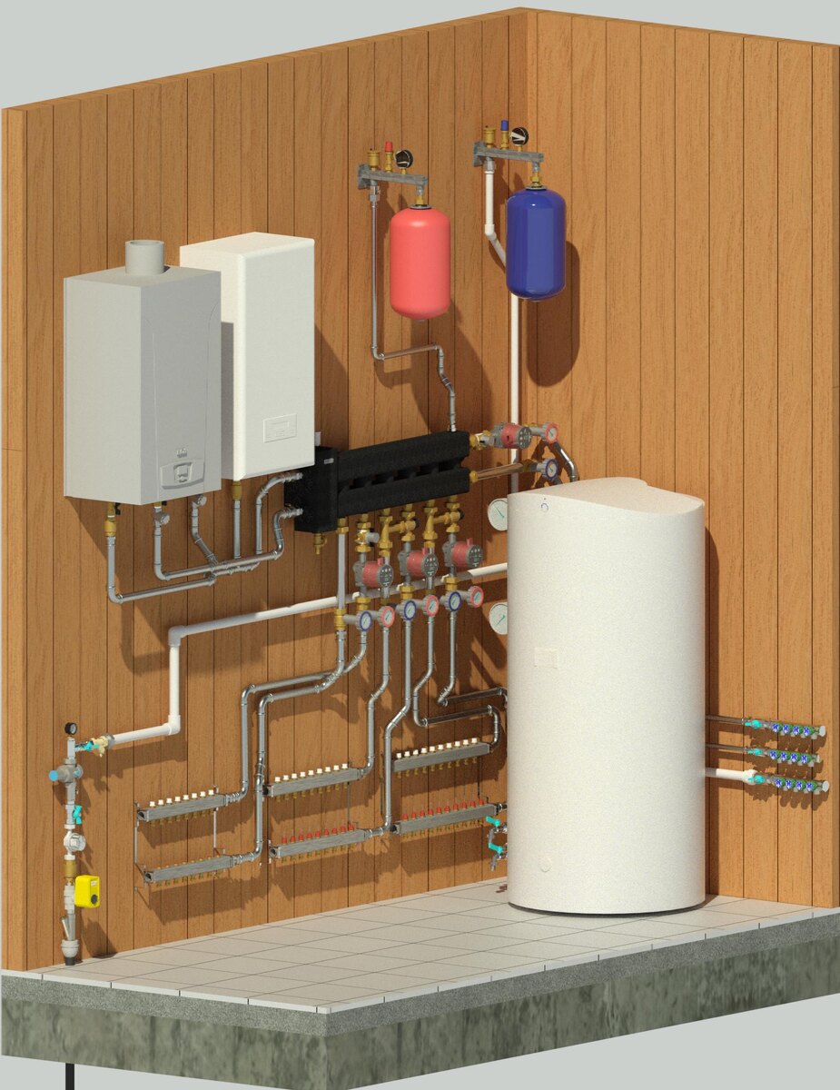 В помещении котельной частного дома гармонично умещается много оборудования. Помимо газового и (нередко) электрического котла - бойлер, узел ввода воды, водоподготовка (от простых фильтров колб до установок с автоматической промывкой), а еще коллекторы отопления и водоснабжения. Все чаще вентиляционная приточно-вытяжная установка.