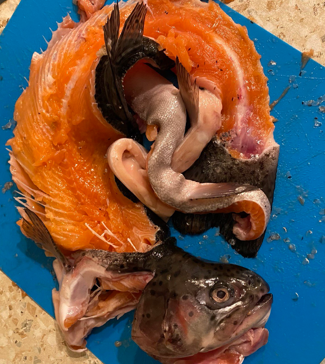 Сегодня готовим уху из форели без круп, для этого понадобятся: 1. Рыба, вернее голова, хребет и плавники форели, оставшиеся после засолки мяса форели 2. Одна большая луковица 3. Одна морковь и три картофелены 4. Специи, соль по вкусу. 5. Много зелени. 1. Рыбу, порезанную на две части луковицу и специи помещаем в кастрюлю, заливаем водой, доводим до кипения и варим до готовности рыбы 25-30 мин. 2. Рыба сварилась. Процеживаем бульон через сито и выливаем в кастрюлю. 3. Картофель и морковь режим крупными кубиками и отправляем в кастрюлю с бульоном. 4. У рыбы убираем кости и чистое от костей мясо помещаем в кастрюлю. 5. Варим до готовности картофеля. 6. Снимаем с огня и добавляем порезанную зелень и приправу для рыбы. Приятного аппетита!
