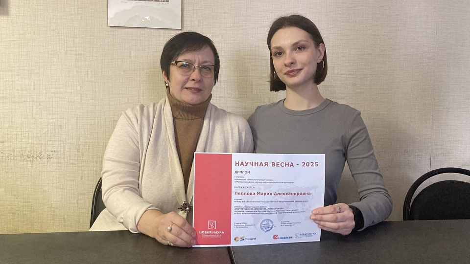Студентка 4 курса факультета иностранных языков Воронежского государственного педагогического университета Мария Пеплова стала участницей Международного научно-исследовательского конкурса «Научная весна – 2025». Он проводился в Петрозаводске и объединил молодых исследователей из разных городов как нашей страны, так и ближнего и дальнего зарубежья - Армении, Киргизстана и Турции. Воронежская студентка представила на конкурс научную статью «Портретная характеристика персонажей», подготовленную под руководством кандидата филологических наук, доцента кафедры английского языка ВГПУ Светланы Капковой. По итогам конкурса, благодаря советам и рекомендациям своего научного руководителя в написании работы, Мария Пеплова стала победителем в номинации «Филологические науки», получила Диплом I степени и возможность публикации своего исследования в сборнике научных статей МНЦП «Новая наука – 2025». - Этот первый, но успешный опыт помог мне приобщиться к миру науки и осознать, как интересно занимат
