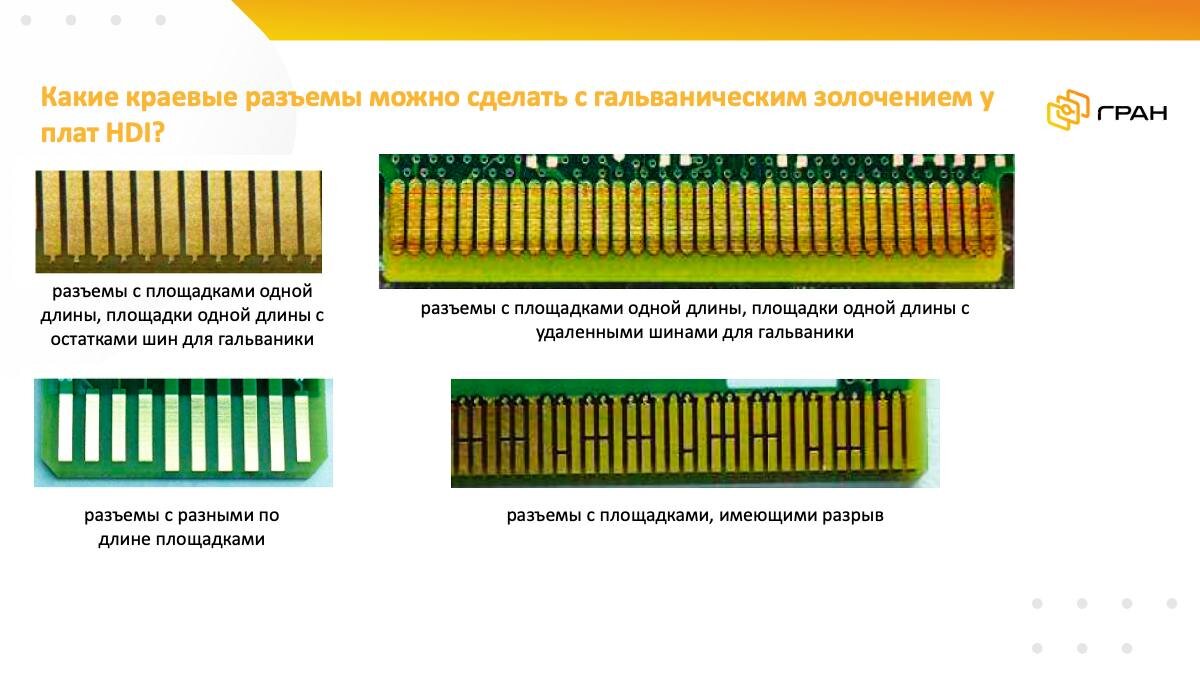 Какие краевые разъемы можно сделать с гальваническим золочением у плат HDI?