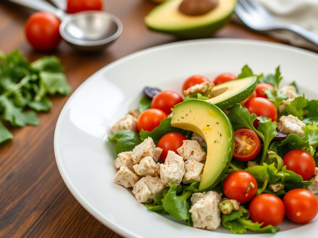 Это — настоящая находка: полезные жиры из авокадо, белки из курицы и свежесть из салата. Лёгкий, но сытный, он идеально подходит для быстрого перекуса или правильного приема пищи.