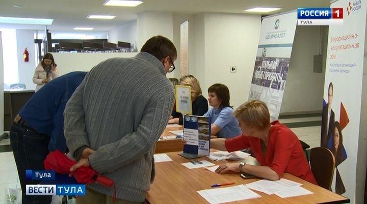 В Тульской области 18 апреля состоится региональный этап Всероссийской ярмарки трудоустройства «Работа России. Время возможностей». Участие в нем примут 234 предприятия, которые предложат 2350 вакансий. В Тульской области, как было отмечено во вторник, 18 марта, на брифинге в правительстве региона, требуется около 34 тысяч работников. Безработица находится на минимальном уровне, поэтому работодателям приходится активно конкурировать за кадры. 18 апреля безработных жителей, молодежь, высококвалифицированных специалистов и рабочих будут ждать по следующим адресам: 1. Тульский областной центр молодёжи «ДКЖ» в городе Тула, улица Демонстрации, дом 134. Площадка для молодёжи будет работать с 11:00 до 14:00. 2. Культурно-деловой центр «Азот» в городе Новомосковск, улица Куйбышева, дом 15. Время работы — с 11:00 до 14:00. 3. Щекинский досуговый комплекс в городе Щекино, улица Ленина, дом 15. Время работы — с 10:00 до 14:00. 4. Центр культуры, досуга и кино в городе Суворов, Дворцовая площадь,