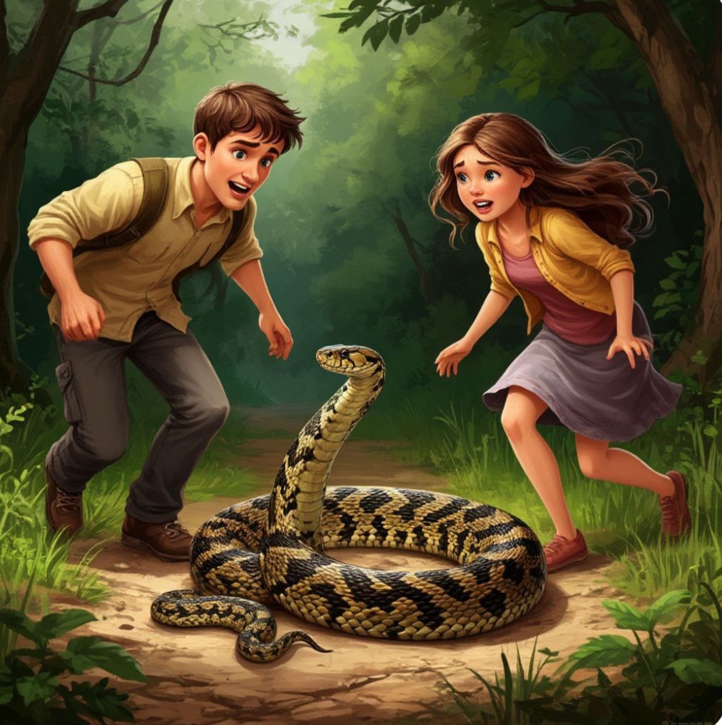 - А-а-а-а-а! Да тут змея! - Какая змея? Гадюка? - Нет, похоже это удав. - Не может быть! - Побежали! - Куда? - Куда- куда? Куда-нибудь, если хочешь остаться живым. Удавы заглатывают людей. - Ты чё, спятила? Как она может это сделать? Такая узкая змея и мы больше 60 кг веса. - Она нападает на человека, хватают за голову и душат. А потом как чулок змея натягивает своё туловище на жертву. И жертва готова! - Бежим скорее! Какие могут быть чулки! У тебя всё шопинг на уме!