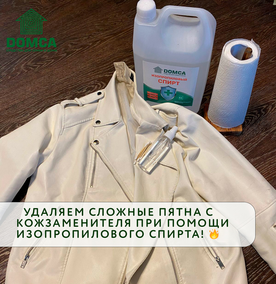 Представьте ситуацию: вы вернулись с творческого мастер-класса, полные вдохновения и новых идей, но на вашей любимой белоснежной куртке из кожзама красуются пятна акриловой краски. Паника? Не стоит! Сегодня мы расскажем, как быстро и эффективно справиться с такими загрязнениями, используя изопропиловый спирт. Этот универсальный помощник не только спасет вашу одежду, но и пригодится для множества других бытовых задач. После активного творческого дня на куртке появились пятна акриловой краски. Обычные средства для удаления пятен оказались бессильны, а отдавать вещь в химчистку — дорого и долго. Но выход есть! Изопропиловый спирт DOMCA стал настоящим спасением. В этой статье мы подробно расскажем, как использовать его для удаления пятен с разных тканей, включая кожзаменитель, хлопок, синтетику и другие материалы. Изопропиловый спирт (изопропанол) — это универсальное средство, которое широко используется в быту, медицине и промышленности. Его главные преимущества: Изопропиловый спир