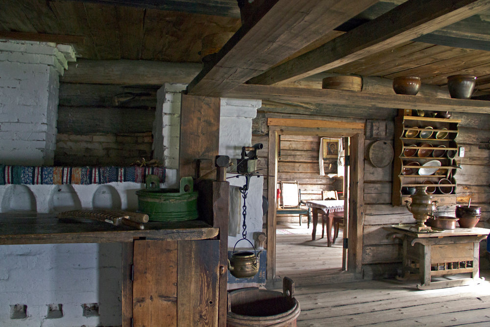 В крестьянских домах обстановка менялась неспешно. Мебель делали своими руками или заказывали у местных умельцев. Её было немного: стол, лавки, служившие и спальными местами, полати для детей, напоминающие багажные полки в поезде. Главную роль играла печь, вокруг которой строилась вся жизнь. В её нишах и под ней хранили посуду и дрова. Одежду и ценности держали в сундуках – передвижных "шкафах", которые легко было спасти при пожаре.