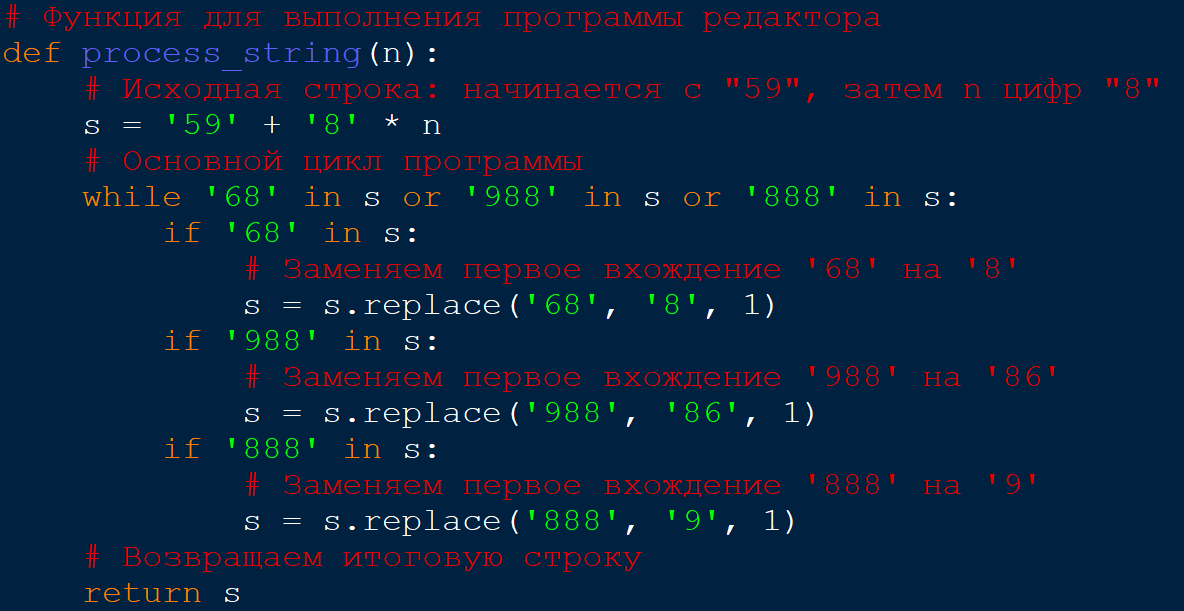 На вход приведённой выше программе поступает строка, начинающаяся с числа «59», а затем содержащая n цифр «8» (2 < n < 10 000).