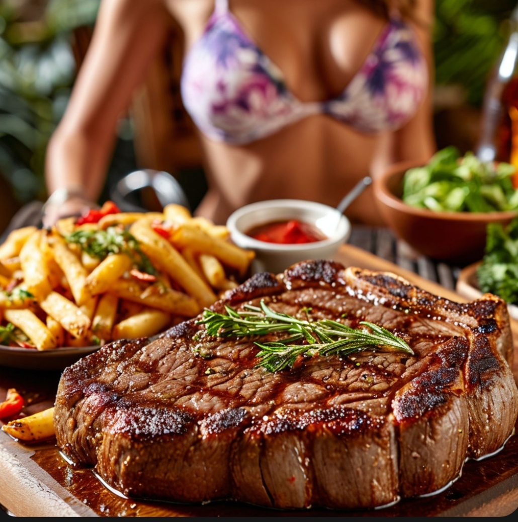 Есть стейк необходимо сразу, пока мраморная говядина горячая, сочная, и мелкие прослойки жира не начали застывать.