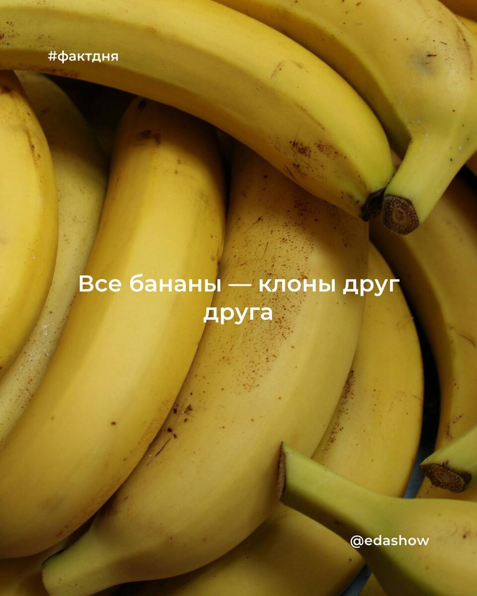 Да, практически все современные бананы — это клоны! 🍌 Большинство бананов, которые мы едим (например, сорт Cavendish), размножаются вегетативно, то есть без семян. Новый банан растет из корневища (ризомы) родительского растения, а значит, генетически идентичен ему. Это делает бананы по сути клонами друг друга. Такое размножение удобно для выращивания: все плоды получаются одинаковыми по вкусу и размеру. Но есть и минус — отсутствие генетического разнообразия делает бананы уязвимыми для болезней. Если вам понравилась наша статья, не забудьте поставить лайк👍Подписывайтесь на канал Еда.Шоу в Дзене — у нас тут вкусно и полезно! Наш сайт и социальные сети: