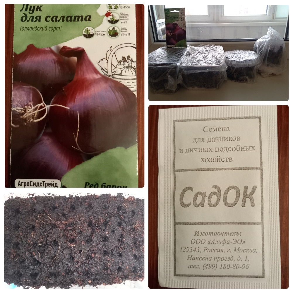 18 марта 2025 года. Сегодня я сею лук. Для посева я выбрала семена «Штуттгартер ризен» и «Ред барон». Оба вида семян я приобрела в «Лемана про» (бывший «Леруа Мерлен»). Такая простенькая упаковочка семян лука «Штуттгартер ризен» стоит 3 рубля. Эта красивая упаковка семян красного лука «Ред барон» стоит 47 рублей. Написано, что голландский сорт. Значит, должен быть супер-пупер во всем. Что ж, проверим. Признаюсь, я никогда раньше не сеяла семена лука на рассаду. Обычно покупала уже готовый севок и высаживала на грядку в конце апреля – начале мая. Выкладываю здесь свой «дебют». На упаковке нигде не написаны сроки посева. Информация в сети об этом тоже весьма противоречивая. Одни говорят - в феврале надо сеять, другие – в марте. Я сею 18 марта. Возможно, поздно, но будь что будет. Я выбрала 4 разных пластиковых тары. В одной – красный лук «Ред барон» (она подписана), в трех других – «Штуттгартер ризен». На дно я, как обычно, насыпаю дренаж в виде яичной скорлупы. Землю смешиваю с кокосовы