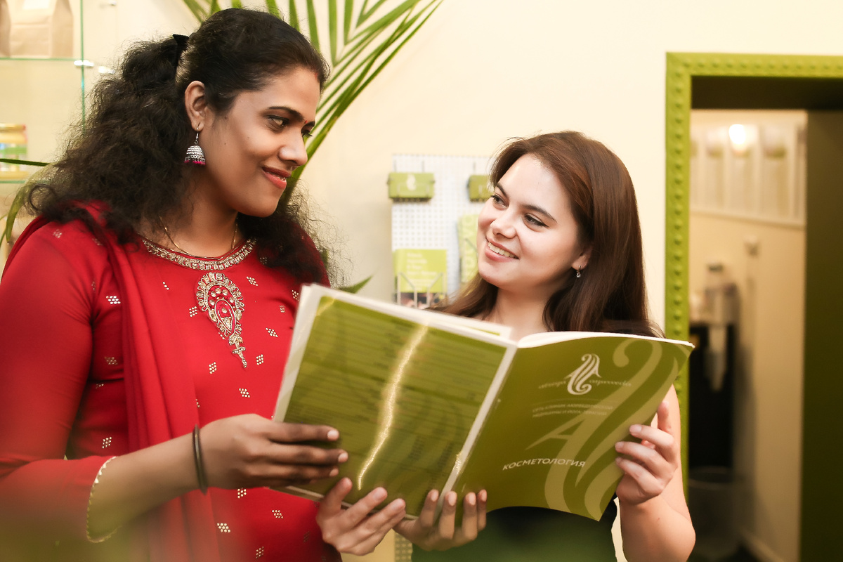 Хотите узнать, как поддерживать лицо в тонусе? В интервью с доктором Дхания мы рассмотрим несколько эффективных техник самомассажа и полезные советы по уходу за кожей, которые помогут вам улучшить состояние вашей кожи. Секреты масляного массажа Мукха Абхьянга — это древний масляный массаж, который рекомендуется делать ежедневно для поддержания здоровья и красоты кожи. Выбор масла зависит от времени года: в холодный период лучше использовать кунжутное масло, которое глубоко увлажняет и согревает, а в теплую погоду — кокосовое масло, обладающее охлаждающими свойствами. Массаж всего тела способствует улучшению кровообращения и лимфатического дренажа, что особенно важно для здоровья кожи лица. Не забывайте, что при регулярной практике вы не только улучшаете состояние кожи, но и способствуете общему омоложению организма. Подробнее о массаже в клинике >>> Омоложение изнутри Для того чтобы избавиться от морщинок и сохранить молодость, важно начинать с общего состояния организма. Омоложение до
