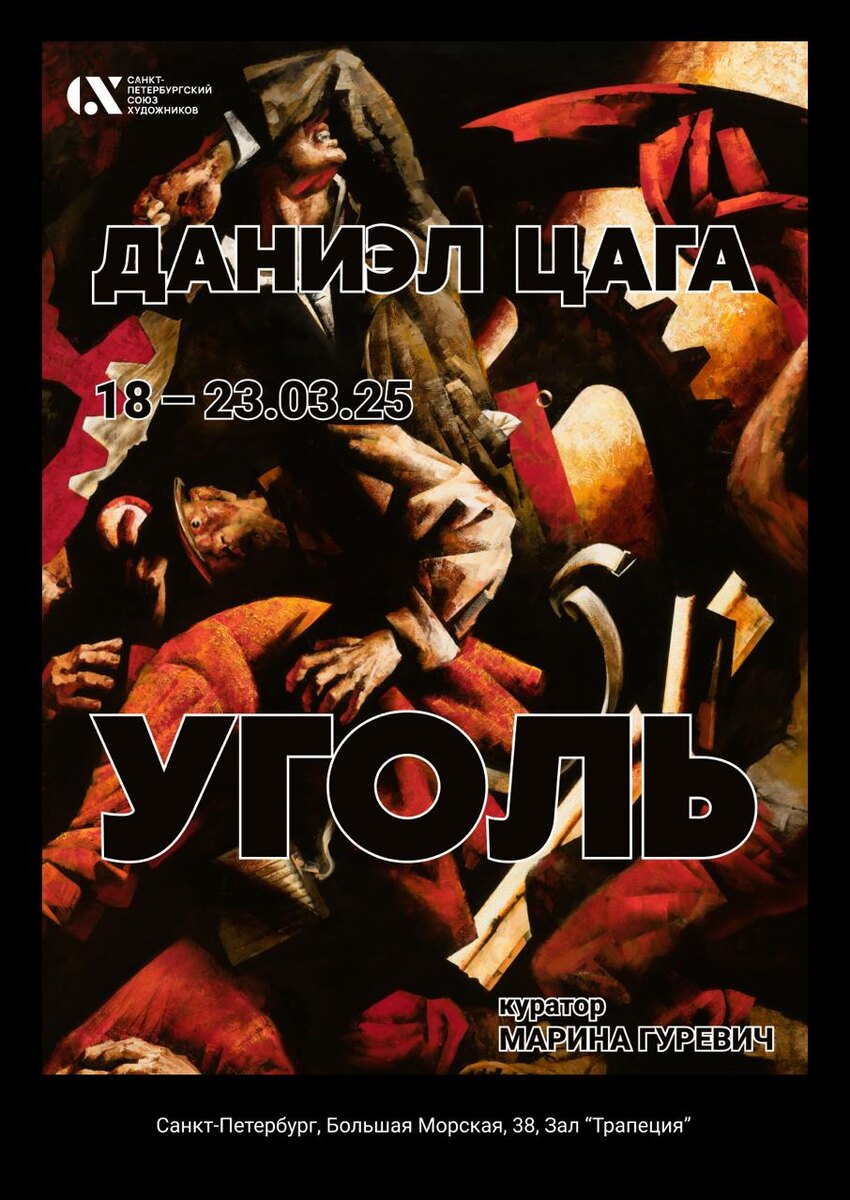 Сегодня, 18 марта, в Санкт-Петербургском союзе художников открывается первая персональная выставка венгерского художника Даниэла Цага “Уголь”. Даниэл Цага учился живописи у разных мастеров в Венгрии и Флориде, а в 2023 году окончил факультет искусств СПбГУ по направлению "станковая живопись". Активный участник групповых выставок в Европе и России. В 2025 году вступил в СПбСХ. Свой первый выставочный проект, как и дипломную работу, Даниэл посвятил своему деду-шахтеру. Характер и воспитание деда во многом сформировали художника как личность. Суровый, сильный, уверенный и спокойный — он много рассказывал мальчику о тяжелых шахтерских буднях. Центральная картина экспозиции – выпускная работа автора «Последняя смена». В ней художник отражает свои обобщенные ощущения и переживания, связанные с рассказами деда, а также закладывает в нее глубинный смысл, ведь «последняя смена» когда-то настигнет каждого из нас… В своей серии портретов шахтеров художник, который никогда не видел дедушкиных
