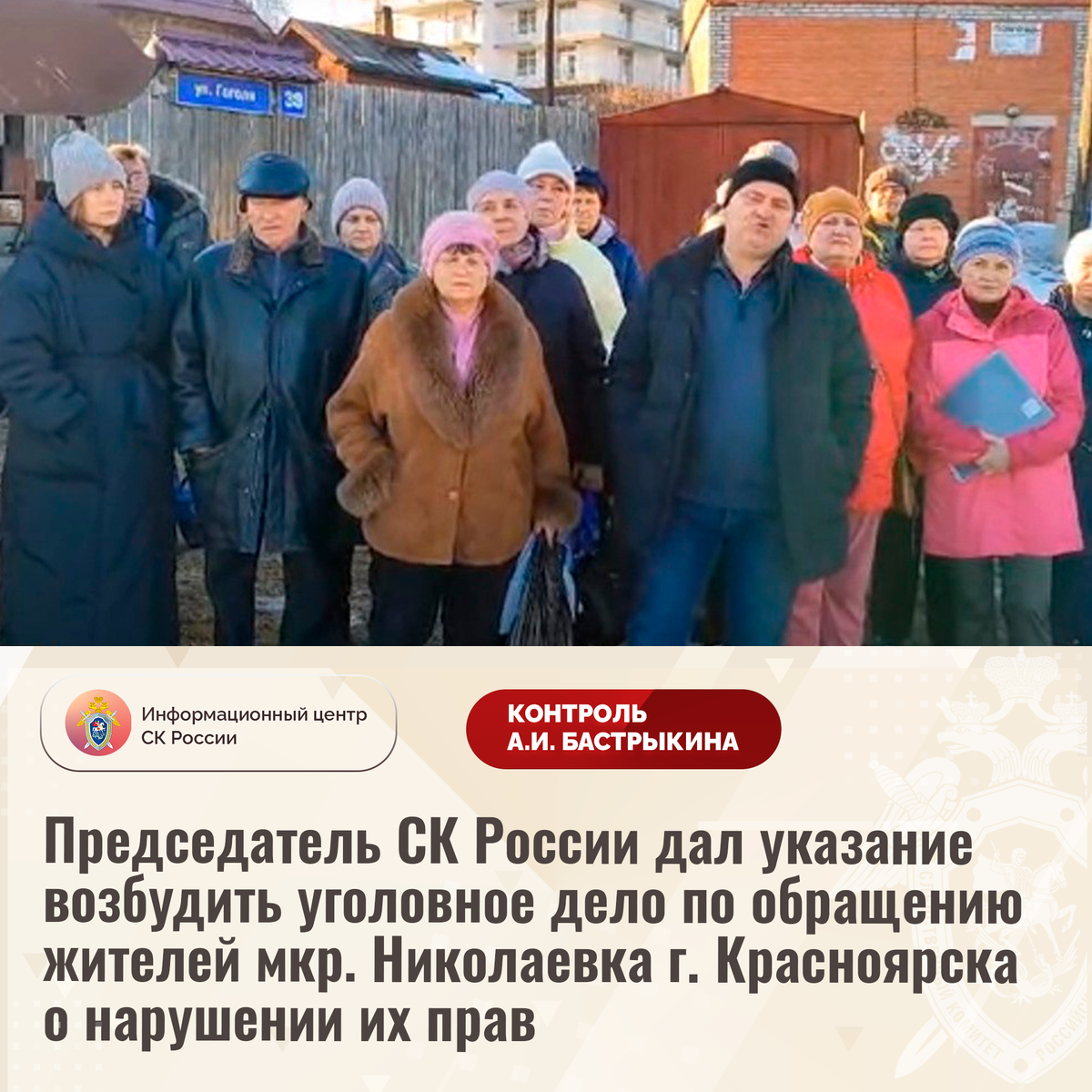 Председатель СК России дал указание возбудить уголовное дело по обращению жителей мкр. Николаевка г. Красноярска о нарушении их прав