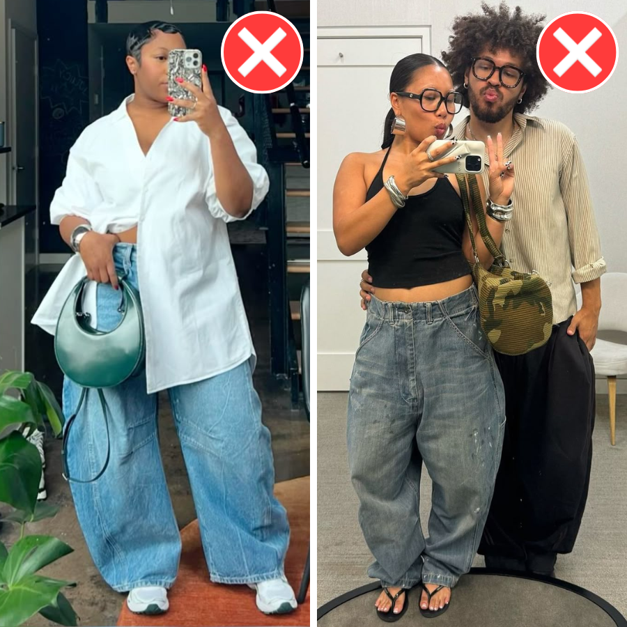 Ну и наконец, мешковатые джинсы родом из нулевых — бэгги. Модные, но крайне коварные. За счет свободного кроя полнят, округляют фигуру и укорачивают рост. Нужны ли такие нам, пышкам? Сомнительное приобретение, скажу я вам.